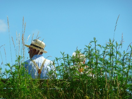 Große Liegewiese ca. 1000 qm hinter dem Haus mit Blick auf´s freie Feld.